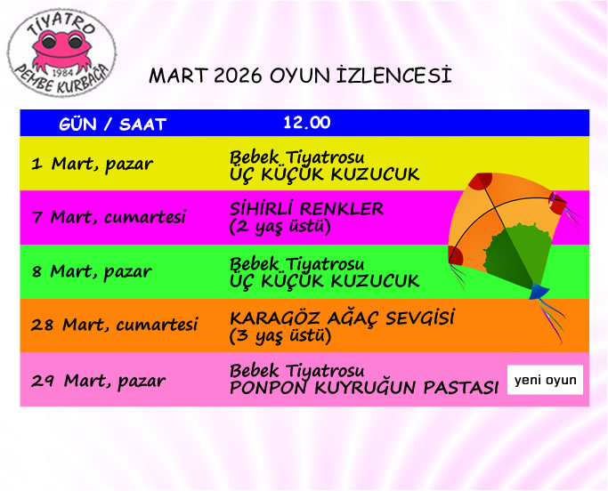 Oyunlarımız Pembe Kurbağa Sahnesinde sergilenmektedir.